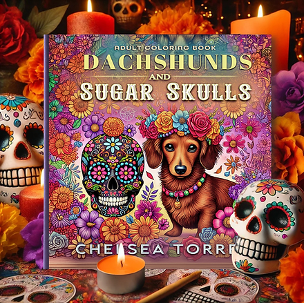 Dachshunds and Sugar Skulls blends the festive beauty of Día de los Muertos with the charm of playful pups. Inside, you'll find 50 hand-drawn illustrations featuring sugar skulls, florals, and whimsical dachshunds—perfect for relaxing, reconnecting, and celebrating culture through creativity.